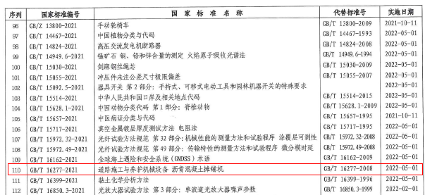 2021年10月11日,國家市場監(jiān)督管理總局和國家標(biāo)準(zhǔn)化管理委員會發(fā)布了中華人民共和國國家標(biāo)準(zhǔn),陜建機(jī)股份公司主編修訂的《道路施工與養(yǎng)護(hù)機(jī)械設(shè)備瀝青混凝土攤鋪機(jī)》國家標(biāo)準(zhǔn)批準(zhǔn)發(fā)布,2022年5月1日起在全國范圍內(nèi)實(shí)施。