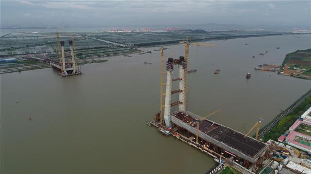 日前,粵港澳大灣區(qū)重點基礎設施項目——位于廣州南沙自貿區(qū)的紅蓮大橋進入攻堅階段,高達180米的主塔開始技術難度最大、工程風險最高的上塔橫梁拼裝作業(yè),加上近期大風多雨的氣候影響,陜建機股份廣東龐源在此項目服務的8臺塔機及4臺施工升降機等施工設備也正經受最大的考驗。紅蓮大橋全長2200米,采用雙塔雙索面混合梁斜拉橋型,主橋長912米,塔高180米,跨度達580米,是目前我國同類型多功能斜拉橋的最大跨度,其搭載多回路高壓電纜、燃氣、通信和輸水隨橋過江管道規(guī)模也刷新了國內同類型橋梁之最?!肮馐请S橋過江的輸水管道,重量就超過...